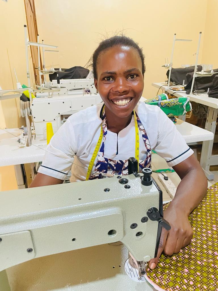 We began providing them with monthly food, took the child back to school, covered her school fees and other necessary materials, and enrolled Angelique in our life skills program. Through this program, she has learned sewing, basket weaving, and other practical skills. She is now able to produce beautiful sewing products like dresses, skirts, and shirts, and she can also weave stunning baskets.